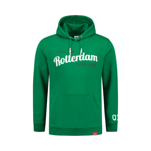 010 shirt in Rotterdams groen. Hoge kwaliteit materiaal en luxe uitgevoerd. 100% katoen, het woord “Rotterdam” als pufprint waardoor het eruit springt, en “010” op de mouw. Rotterdamser wordt ‘t nie…