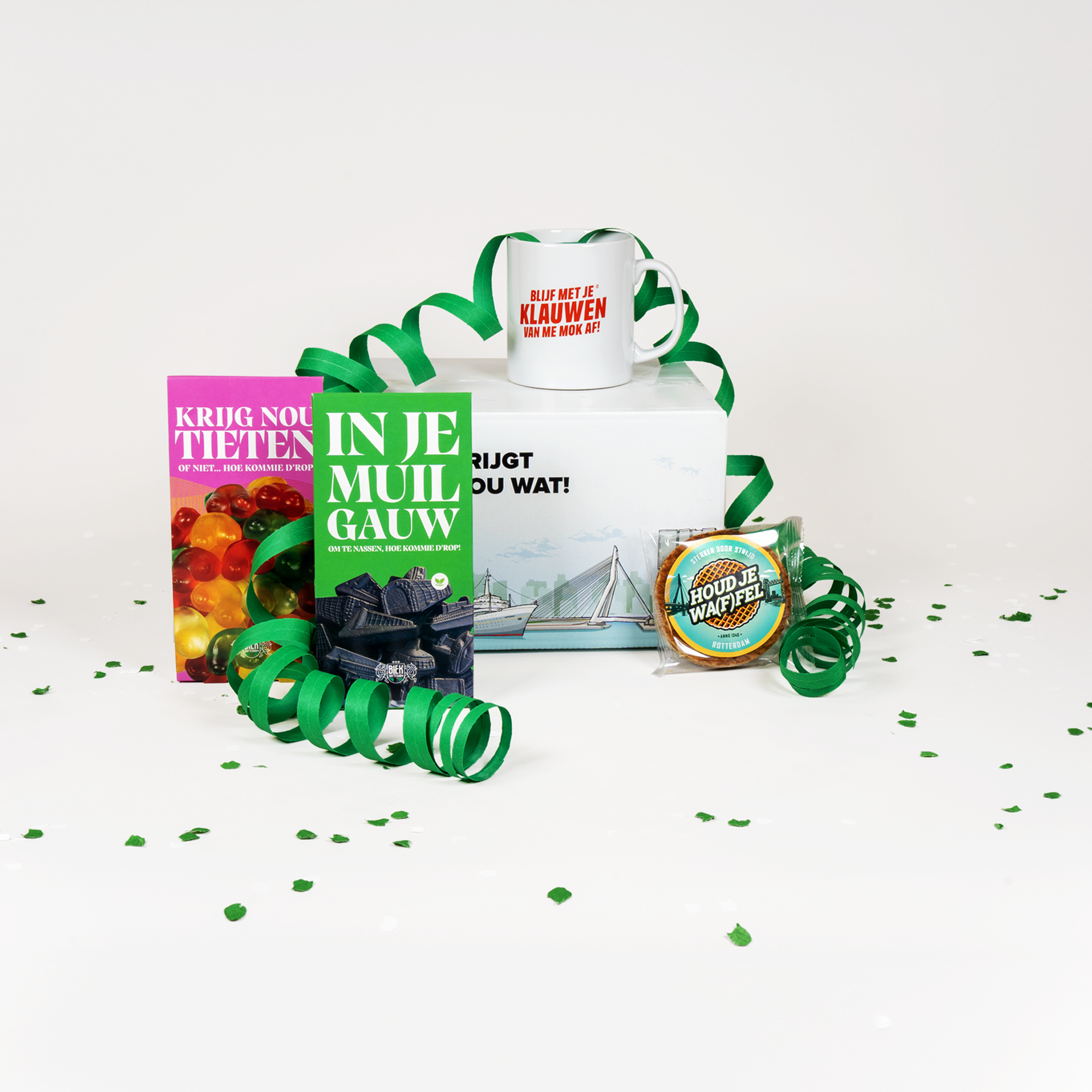 Ben je op zoek naar een cadeau dat nét even anders is? Het Goed Fout pakket is precies wat je zoekt. Dit Rotterdamse cadeaupakket zit vol met lekkers en humor. Beetje plat, wel gezellig. Perfect om iemand te verrassen met een glimlach én wat lekkers erbij.