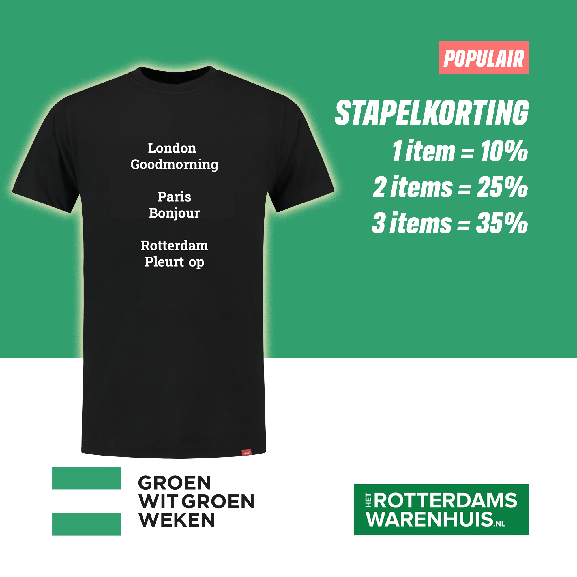 Groen-wit-groen-weken: Stapelkorting op shirts & sweaters met Rotterdamse teksten!